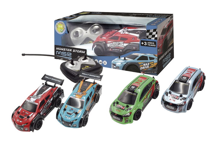 Coche de rally radio control escala 1:26, frecuencia 27 MHz. Funciona con 2 pilas AA en el coche y 2 pilas AA en el mando, no incluidas. Disponible en 4 colores.