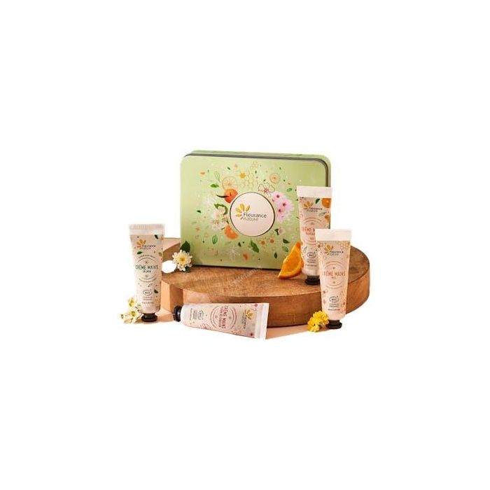 FLEURANCE NATURE Cofre Verde Cuarteto De Cremas De Manos 4 Uds Jazmín Flor de Cerezo Mandarina Miel