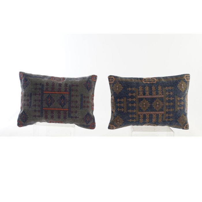 DKD Home Decor Cojin Arabe Josta Bordado Geométrico Azul Naranja 10 x 35 x 50 cm (2 Unidades)