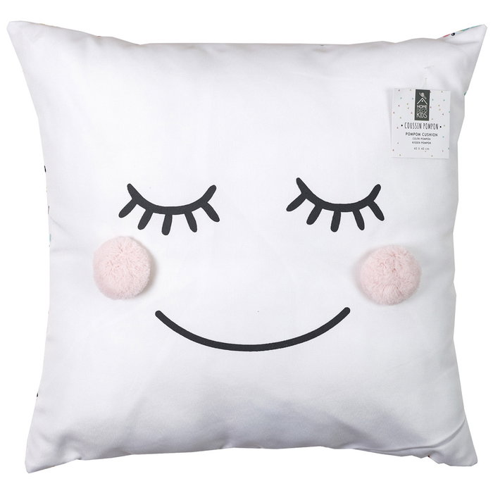 Home Deco Kids Cojín Pompón Vallee Outlet 40x40 cm Cara con Pompones y Flores