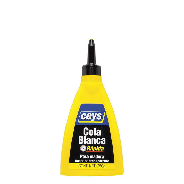 Cola blanca rapida biberón 250 g. cola especial para el encolado de todo tipo de maderas y derivados trabajos de montaje, ensamblaje, revestimientos y bricolaje más fuerte que la madera permite rectificar uniones flexibles.