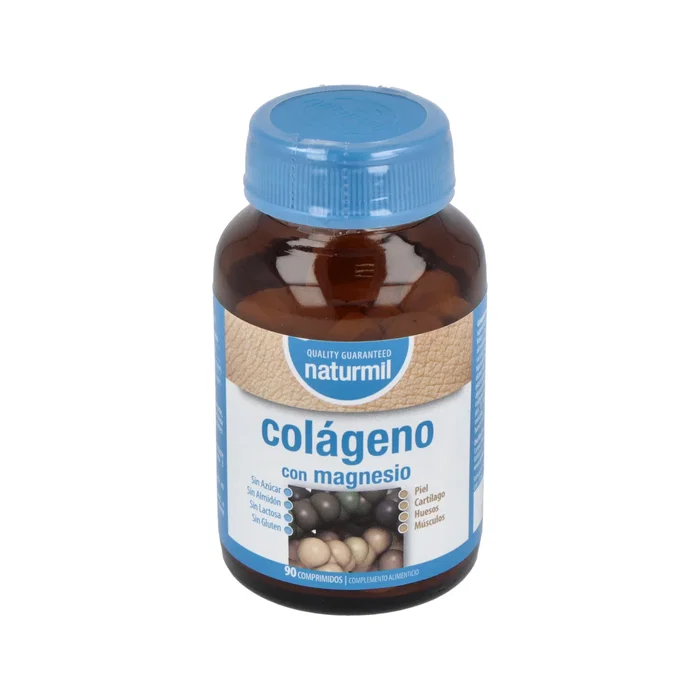 Composicion: Colágeno hidrolizado, óxido de magnesio, Agente de carga: celulosa microcristalina, ácido L- ascórbico, antiaglomerantes: estearato de magnesio, dióxido de silicio. Por 1 comprimido: Colágeno 600 mg, Magnesio 62,5 mg (16,67% VRN*), Vitamina C 13,33 mg (16,67% VRN*). (*)= Valores de Referencia de Nutrientes.