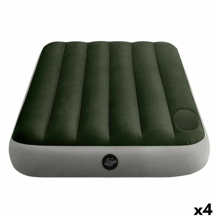 Colchón hinchable individual INTEX para camping de 99 x 191 x 25 cm, soporta hasta 136 kg. Integra bomba de hinchado de pie y válvula 2 en 1 para usar hinchador manual o eléctrico. El tiempo de hinchado es de 2,30 minutos aproximadamente. Fabricado con tecnología Fiber-Tech, para mayor estabilidad y firmeza, y en PVC laminado de acabado flocado. La base y los laterales son más resistentes al agua y se pliega compacto. Con test de hermeticidad Air Lock.