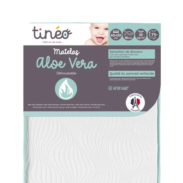 ¡Un colchón ideal para pieles sensibles! Reconocida por sus propiedades antibacterianas, antialérgicas y calmantes, la aplicación de Aloe Vera en la garrapata proporciona comodidad y suavidad para mejorar la calidad del sueño. Este colchón ultra suave para la piel será especialmente adecuado para las pieles más frágiles. Densidad del bloque de espuma 20 kg / m3 Espesor: 10 cm Acabado trenzado tradicional / Trenza verde agua