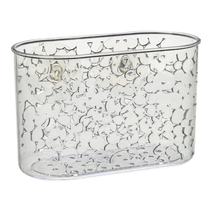 Cesta de plastico transparente rectangular para baño con ventosas modelo galet . medidas: 18.5x11.5x8.5cm