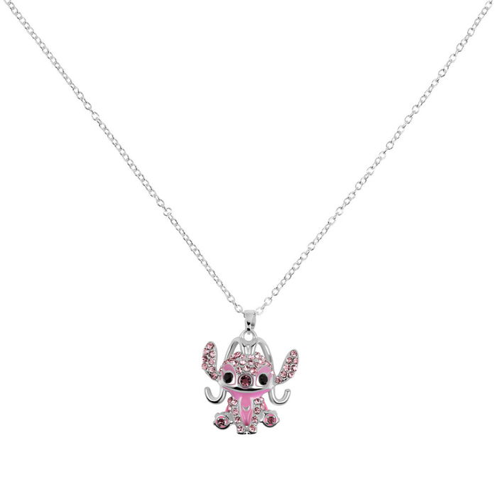 Disney Colgante Angel Stitch con Brillantes Piedras Rosas en Cadena Ajustable 16"