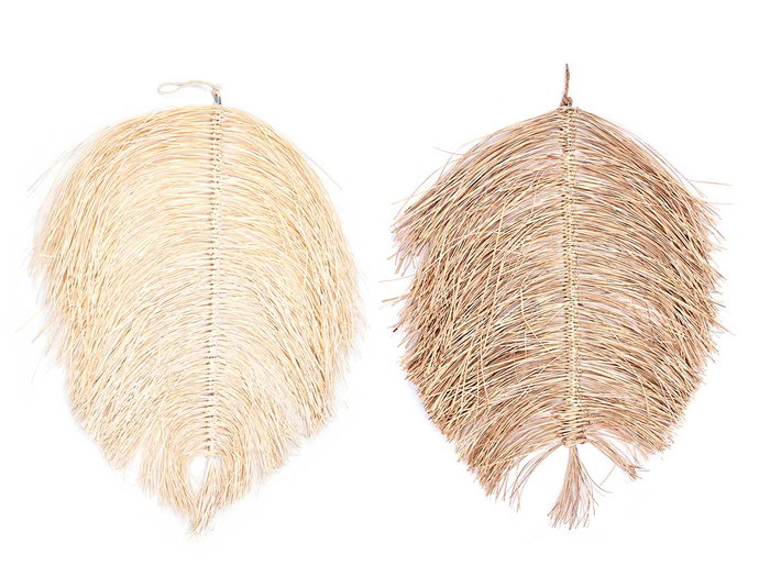 Giftdecor Colgante Hoja Palma Grande 2 Colores Surtidos Fibra Natural Rattan Metal 63x90x1 cm (Set de 12)