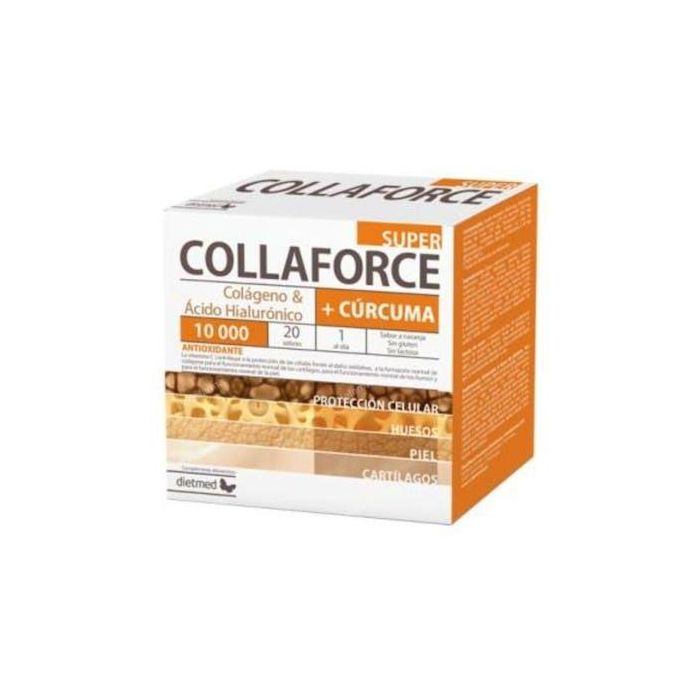 DIETMED Collaforce Super +Cúrcuma 20 Sobres | Colágeno Hidrolizado, Ácido Hialurónico, Magnesio, Vitamina C y D | Protección Celular, Huesos, Piel y Cartílagos
