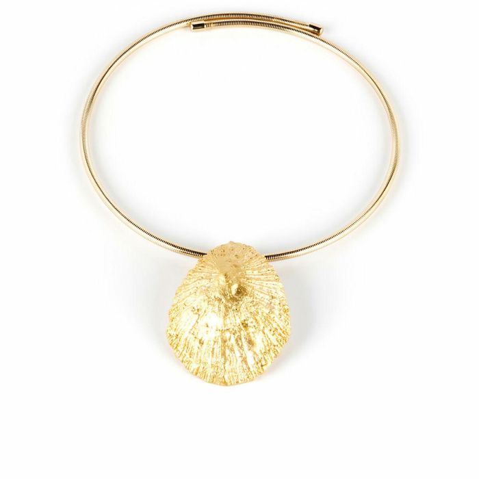 El diseño destaca por su protagonista: una lapa, un molusco que habita en las rocas, aportando un elemento natural y elegante. Con una medida central de 5,5 cm de largo, esta joya se presenta con una línea de pura elegancia y estilo. Su collar elástico ofrece comodidad y un ajuste favorecedor, además de destacar por su diseño único.