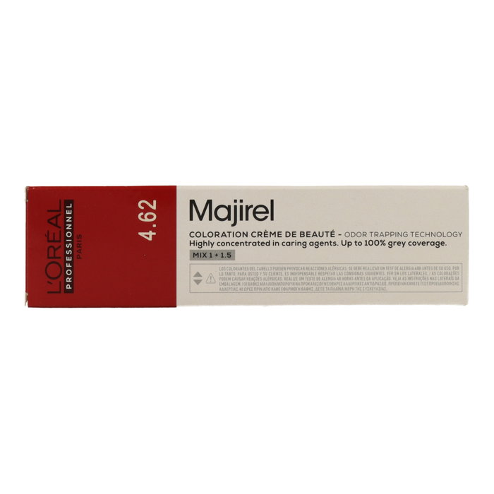 Coloración permanente profesional diseñada para aportar un castaño intenso con reflejo rojo irisado vibrante y sofisticado.