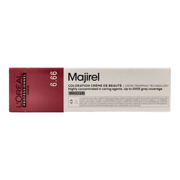 Coloración permanente profesional con reflejos rojos intensos ideal para un color vibrante duradero y lleno de personalidad.