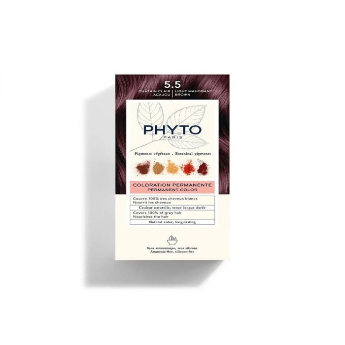 Phyto PHYTOCOLOR #5.5 Tinte Permanente Castaño Claro Caoba sin Amoniaco | 100% Cobertura Canas 4 u