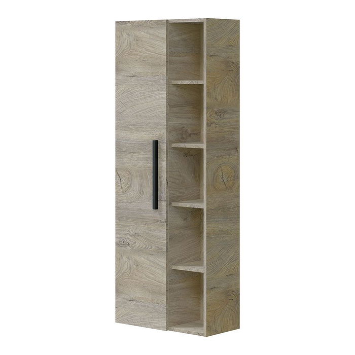 Forés/Arkit Armario Baño Athena Roble Alaska 51x25x135 cm Melamina 1 Puerta 3 Estantes Regulables 4 Estantes Fijos