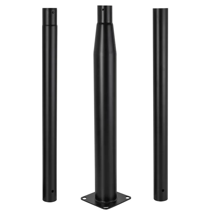 Columna cilíndrica formada por 3 tramos de 1 metro, fabricada en aluminio de 1.8mm de espesor y acabado en color negro. Su formato desmontable hace que sea fácil de transportar y manejar. Para el ensamblaje de los tramos se incluyen los anclajes correspondientes. Los tramos se pueden montar libremente para obtener una altura final de 2 o 3 metros. Apta para farolas compatibles con báculos de 76mm de diámetro. Tamaño de la base: 150x150mm.