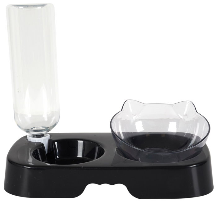 - A tu gato le encantará este nuevo accesorio para comer y beber compuesto por un cuenco ergonómico elevado con forma de cabeza de gato y un dispensador de bebida con una botella de 500 ml de