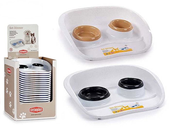 Stefanplast Comedero Doble Beige y Antracita Plástico 34 x 11 x 46.5 cm (Set de 24)