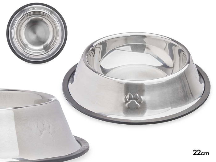 COMEDERO MASCOTA METALICO 22CM HUELLAS GOMA