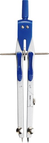 Compás precisión de metal. Ajuste de radio completamente variable mediante rueda central y mecanismo de ajuste rápido. Extensión adicional crea círculos de hasta 640 mm de diámetro. Mina intercambiable. Incluye un paquete de minas.