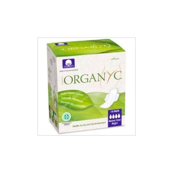 ORGANYC Compresas Con Alas Noche Flujo Abundante 10Ud. 100% Algodón Orgánico