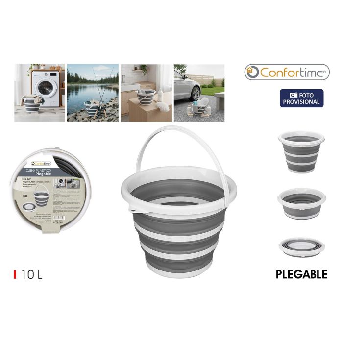 Confortime Cubo Plegable de Plástico 10 Litros 33x33x24.5 cm (12 Unidades)
