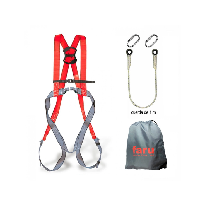 Faru Arnés Anticaídas P30F Cuerda C170 (1m) 2 Mosquetones Virola y Bolsa Porta Arnés Seguridad Trabajo