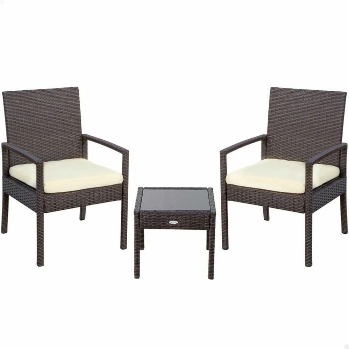 Aktive Conjunto 2 Sillones (54,5x56x79 cm) y Mesita (43,5x39 cm) Acero Rattan Vidrio Poliéster