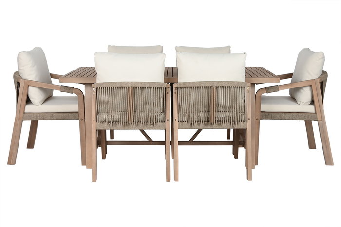 DKD Home Decor Mesa Comedor Terraza y Jardín Roda Marrón Beige Acacia/Poliéster 170 x 90 x 75 cm Set 7 Piezas