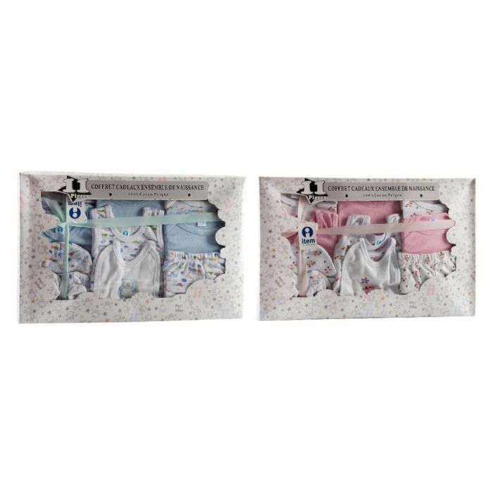 DKD Home Decor Set 11 Piezas Bebe Baby Rosa Blanco 24 x 32 cm Algodon Corazones Mariposas Capacidad 0-6 Meses