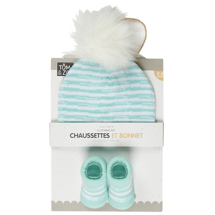 Tom et Zoe Conjunto Gorro Y Calcetines Modelos Surtidos Cuadros Grises Rayas Azules