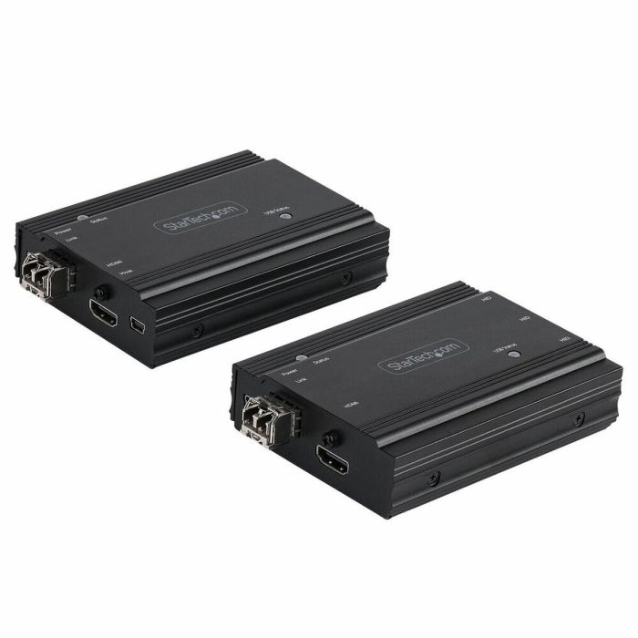 El conmutador KVM con 2 puertos Startech modelo SV565FXHD4KU es una solución avanzada para controlar simultáneamente múltiples ordenadores con una consola única, utilizando tecnología de conexión HDMI y USB HID. Este dispositivo permite la extensión y conmutación remota de teclado, ratón y monitor a través de fibra óptica multimodo, ofreciendo una calidad de imagen excepcional con soporte para señal UHD 4K a 60Hz y muestreo de croma 4:4:4, lo que garantiza una reproducción fiel del color y nitidez en pantallas remotas. Incluye dos módulos SFP+ multimodo de 10 Gb para conexiones de hasta 300 metros con una velocidad óptima, facilitando la gestión en entornos profesionales donde la distancia entre consola y ordenadores es considerable. Su diseño robusto en color negro y chasis metálico asegura durabilidad y fiabilidad en instalaciones permanentes. Además, integra tres puertos USB HID para la conexión de periféricos como teclados y ratones, favoreciendo una experiencia de uso fluida sin pérdida de funcionalidad. El equipo soporta el paso de EDID, lo que permite que el sistema configure automáticamente la resolución y otras características óptimas del monitor conectado, garantizando compatibilidad y facilidad de instalación. Su voltaje de entrada estándar de 100-240 V AC y salida a 5 V DC, junto con dimensiones compactas de 7,5 cm de ancho, 10 cm de profundidad y 2,8 cm de altura, lo convierten en un dispositivo versátil para todo tipo de montajes. El conjunto está pensado para usuarios que requieren administrar múltiples equipos desde una única estación de trabajo con la máxima calidad de vídeo y sin interferencias, combinando la eficiencia de un switch KVM tradicional con la elegancia y rendimiento que aporta la fibra óptica. Este producto es ideal para entornos profesionales como centros de control, broadcast, instalaciones corporativas o cualquier aplicación que demande una extensión fiable de señales HDMI y controles USB a distancia, manteniendo la integridad visual y operativa. En definitiva, el Startech SV565FXHD4KU representa una solución técnica sólida para la gestión remota de sistemas informáticos con alta exigencia en calidad gráfica y conectividad estable.