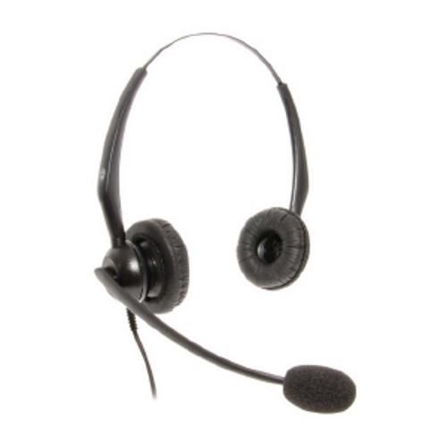 Contacta Auricular Binaural RJ11 con Micrófono Boom Anulación Ruido. Diadema Ajustable y Audio Claro para Intercomunicación
