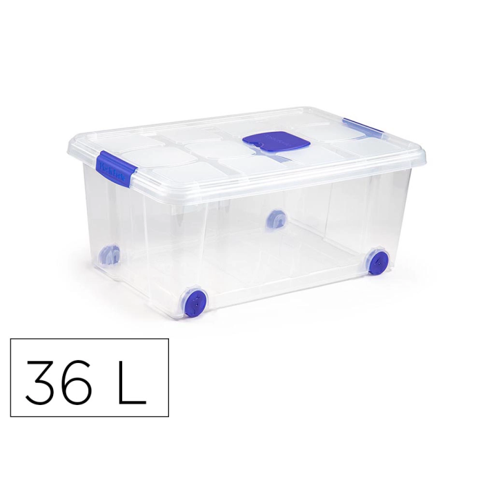 Plasticforte Contenedor N3 Plástico Transparente con Tapa 36 L Resistente Medidas 40x59x25 cm Fabricado en España