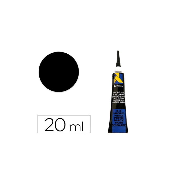 La Pajarita Contorno Relieve R-3 Negro Tubo 20 ml Pintura Manualidades