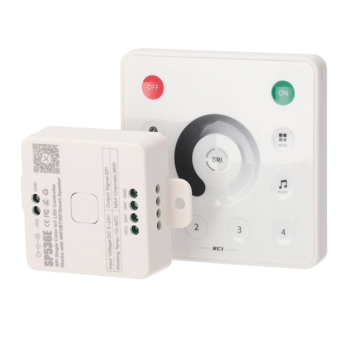 Control mediante aplicación móvil: utiliza un chip de control principal de modo dual para una conexión Bluetooth eficiente, que ofrece opciones de conectividad Bluetooth, Wi-Fi y nube remota.Control por voz con altavoces inteligentes: integrado con plataformas de altavoces inteligentes como Alexa, Google Home, XiaoDu y XiaoAi, lo que permite controlar el encendido, apagado y brillo de la luz mediante comandos de voz.Compatible con el mando a distancia táctil 2.4C (RB1) y el panel de control táctil 2.4G tipo 86 (RC1).Compatible con el controlador IC LED de un solo cable reiniciable normal: capaz de gestionar hasta 3600 canales.Variedad de efectos dinámicos de luz blanca y efectos musicales: admite amplios ajustes de parámetros.Múltiples métodos de recopilación de música: incluye la captura de audio a través de micrófonos de teléfonos inteligentes, reproductores de streaming y micrófonos integrados.Múltiples efectos de animación de encendido/apagado y conmutación temporizada: proporciona una experiencia de usuario mejorada a través de ajustes personalizables. SP536E es compatible con el control de aplicaciones para dispositivos iOS y Android. Los dispositivos Apple requieren iOS 10.0 o superior, y los dispositivos Android requieren Android 4.4 o superior. Puede buscar «BanIanX» en App Store o Google Play para encontrar la aplicación, o escanear el código QR para descargarla e instalarla.