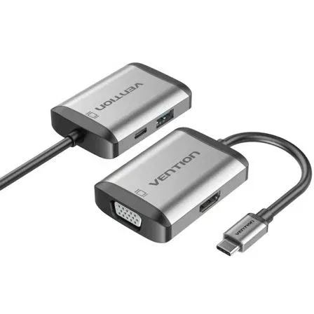 Conversor USB tipo C a HDMI/VGA/USB3.0/PD 0,15 M tipo de metal gris