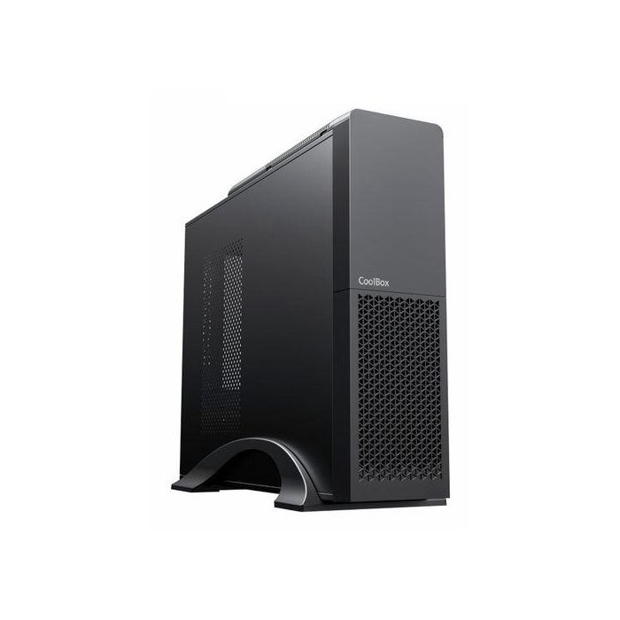 Tipo: microATX Slim|Fuente de alimentación: CoolBoxBASIC-500GR-S 500W o 300SBZ SFX 80+ Bronze|Slots de expansión: 4 de media altura (low profile)|Material: Chasis de acero SPCC/SGCC 0.5 mm y plástico ABS|Dimensiones: 100 x 314 x 400 mm|Peso: 3,05 Kg|Color: Negro|CONECTORES FRONTALES|1 x puertos USB-A 3.2 Gen1|1 x puertos USB-C 3.2 Gen1|Audio HD (1 jack combo 3.5mm para manos libres [AUR+MIC] + 1 jack 3.5mm para micrófono)|SEGURIDAD|Soporte para cierre Kensington|Soporte para candado|Soporte para botón de alarma (opcional)|COMPATIBILIDAD|Placas base: formatos microATX y miniITX, dimensiones máximas 220 x 243 mm|Tarjetas gráficas: low profile, longitud máxima 225mm|Conector combo, es al mismo tiempo AUR + MIC