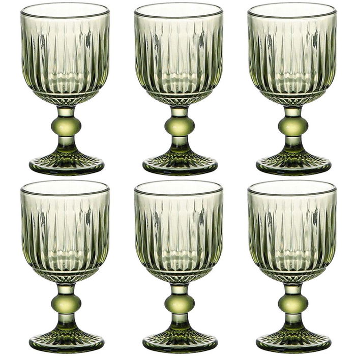 DKD Home Decor Copa Basicos Stripes Garbo Verde Cristal Rayado 8 x 14.5 x 8 cm Set de 6 Piezas