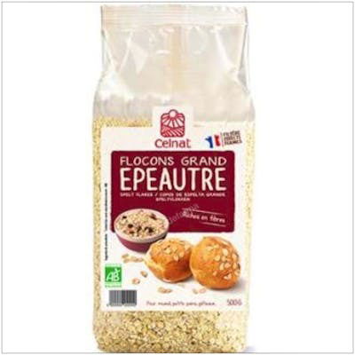 Composicion: Copos de espelta de agricultura ecológica. Valor nutricional por 100 g: Grasa 3.8 g Carbohidratos 59 g Proteína 12 g Sal 0.01 g *Posibles trazas de cereales que contienen gluten, soja, frutos secos (avellanas, almendras, anacardos), sésamo.
