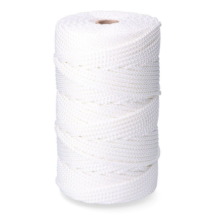 Cuerda trenzada de poliéster de alta tenacidad granete, con tratamiento uv. producto flexible, suave, resistente a la abrasión y alta resistencia al contacto con sustancias químicas. material sumergible y baja absorción al agua. cordón ideal para toldos, persianas, tenedederos, invernaderos, ganadería, efectos navales, bricolaje. resistencia a la rotura: 400 kg, medida bobina ø15,5 x 25,5 cm, medida agujero central ø2,5 cm