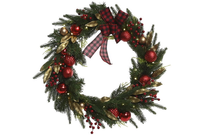 DKD Home Decor Corona Navidad Tradicional Verde Rojo 15 x 60 x 60 cm (2 Unidades) con 50 LEDs