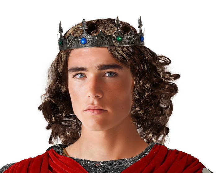 Impón respeto con esta corona plateada de estilo majestuoso, adornada con piedras brillantes. ideal para interpretar a un rey oscuro, noble fantástico o señor de un reino lejano. un complemento perfecto para eventos de rol, disfraces medievales o temáticas de fantasía