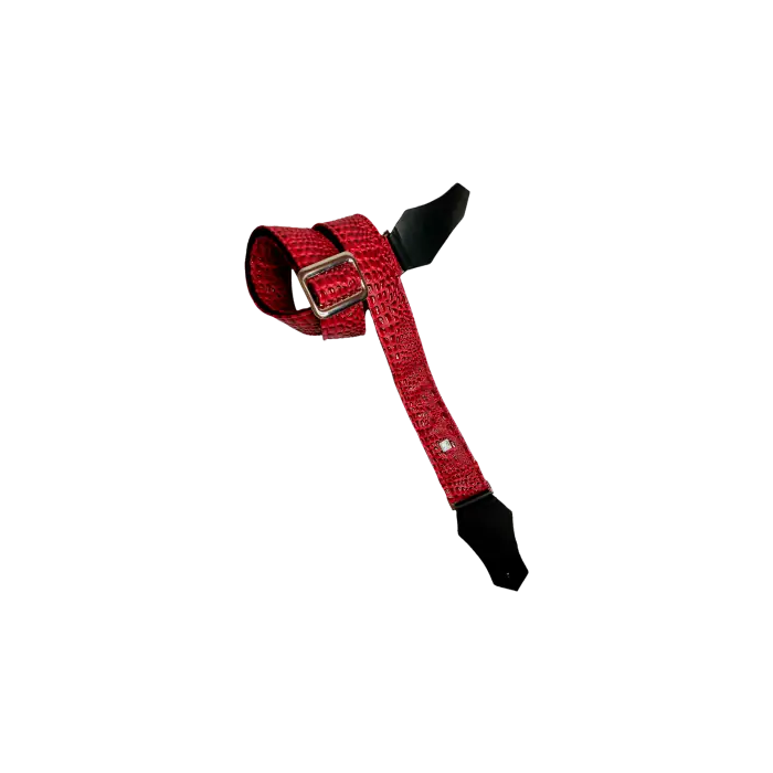 - Categoría: correa - Instrumento: guitarra, bajo - Material: piel - Tapicería: piel sintética grabada - Colores: rojo fuego brillante a rojo sangre intenso - Largo: ajustable hasta 165 cm
