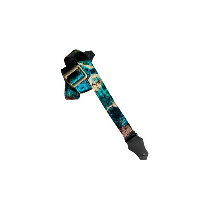 - Categoría: correas- Instrumento: guitarra, bajo- Material: nailon, piel, terciopelo- Funda: terciopelo estampado estilo acuarela- Color: tonos de blanco plateado a negro parduzco oscuro, con toques de azul- Longitud: ajustable hasta 165 cm