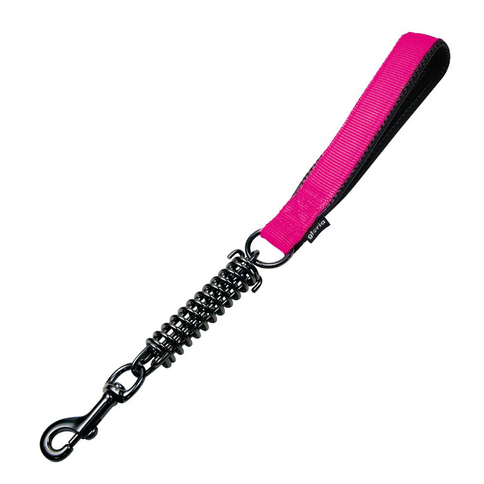 - Observaciones: El acabado negro satinado tan bonito se consigue aplicando un tratamiento galvanizado al metal, al no ser pintura permanecerá de este color durante mucho tiempo. Además incorpora un práctico muelle que amortigua los posibles tirones de manera eficaz. Ideal para perros de razas fuertes.