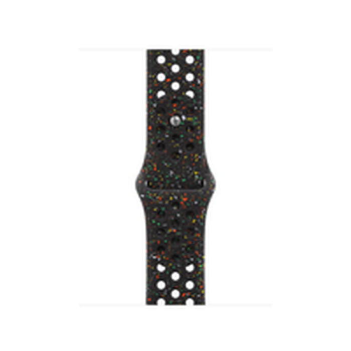 La correa Nike Sport es resistente y suave a la vez, además de transpirable gracias a sus perforaciones hechas por compresión. Incluye fragmentos de distintos colores que se combinan de forma aleatoria para crear un diseño único. Está hecha de un material flexible yagradable al tacto que se adapta con elegancia a la forma de tumuñeca. Sucierre de clip dealuminio está grabado con el logotipo de Nike yle da al pasador un elegante acabado mate.