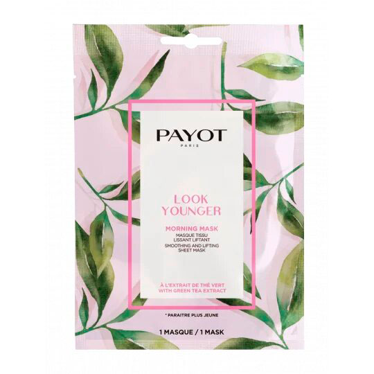 Las morning masks de payot son mascarillas de tejido ecológico diseñadas para ofrecer una belleza exprés en solo 15 minutos, brindando resultados rápidos y efectivos para el cuidado de la piel.la mascarilla "look younger" es una opción ideal para todas aquellas personas que deseen una piel de apariencia más joven y luminosa, especialmente para aquellas que tienen pequeñas líneas de expresión. esta mascarilla alisadora y tensora está enriquecida con extracto de té verde, que actúa como un auténtico tratamiento rejuvenecedor para la piel.el extracto de té verde es conocido por sus propiedades antioxidantes y antiinflamatorias, lo que lo convierte en un poderoso aliado para combatir los signos del envejecimiento y reducir la apariencia de pequeñas líneas de expresión. al utilizar la mascarilla "look younger", la piel recibe un impulso de luminosidad y los rasgos se alisan al instante, brindando un aspecto más juvenil y radiante.además de sus beneficios para la piel, la mascarilla "look younger" ofrece una experiencia sensorial agradable con sus notas elegantes, delicadas y golosas de pera y rosa blanca. estas notas añaden un toque refinado y atractivo a la mascarilla, haciendo que su uso sea una experiencia placentera y relajante.en conclusión, la mascarilla "look younger" de payot es una excelente opción para aquellos que desean lucir una piel más joven y luminosa en tan solo 15 minutos. su fórmula con extracto de té verde y sus notas elegantes hacen que esta mascarilla sea una verdadera aliada para rejuvenecer la piel y proporcionar un aspecto radiante y luminoso.