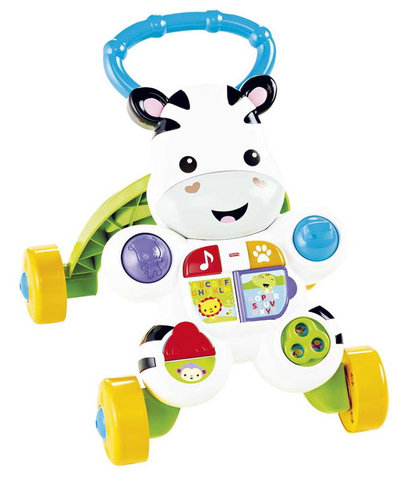 ¡Con la cebra parlanchina primeros pasos tu pequeñín aprenderá sus primeras palabras y dará sus primeros pasos! ¡Gira, da vueltas y rueda! Esta cebra viene cargada de entretenidas actividades para que el niño juegue sentado. Incluye un libro con una página que se puede pasar y botones luminosos que activan canciones y frases sobre las letras y los números. Más adelante, cuando el niño aprende a andar, el asa fácil de sujetar y la robusta base con cuatro ruedas del andador ayudan al niño a dar sus primeros pasos. También dice frases, emite canciones y música para animar al niño a seguir andando con más confianza. (Y para que los padres puedan estar más tranquilos). Características: ¡Dos opciones de juego! Asa fácil de agarrar y base robusta con cuatro ruedas para estabilizar los pasos del niño. Las numerosas actividades manuales ayudan a ejercitar la motricidad fina. En cambio, cada vez que se pone de pie, anda y coge los juguetes, el niño pone en práctica la motricidad gruesa. Los colores vivos, la música, las luces y las texturas llaman la atención del niño y le ayudan a desarrollar los sentidos.