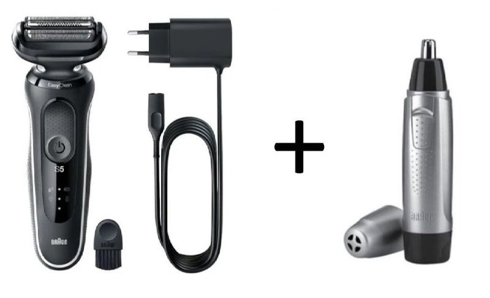 La Afeitadora Braun Serie 5 es una solución integral para el cuidado personal masculino, que incluye tanto la afeitadora principal como el dispositivo Narticero EN10 para un afeitado preciso. Diseñada por la reconocida marca Braun, esta afeitadora ofrece un rendimiento confiable y una comodidad superior.
