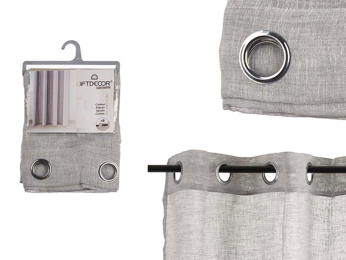 Cortina 140x260 cm 8 Anillas Gris Giftdecor (Set de 6)