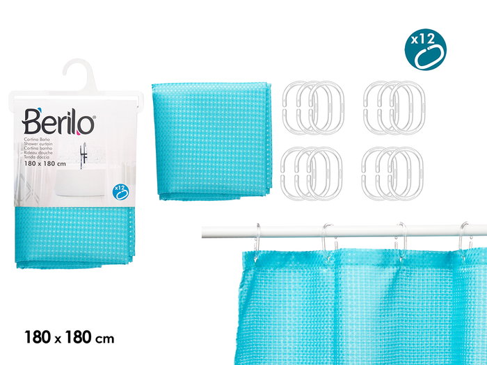 CORTINA BAÑO POLIESTER AZUL PUNTOS 180X180CM